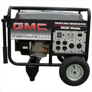 YUKON 3500R Features: -3500 Watts Maximum Output , 3000 Watts Rated Output. -Recoil Start. -7.0 HP Engine. -Durable 4-Stroke, Air Cooled, OHV Engine. Designed for the GMC Yukon 3500 Generator. -Displacement 212 cc. -3600 rpm. -Frequency 60 Hz. -Rated Amps 120/240 25/12.5 amps. -3.8 gal/12 hrs @ 50pct load. -Low Oil Shut Off System. -Engine Oil capacity .6L (.634 qt). -Alternator Brush. -Spark Arrestor. -Heavy Duty Steel Constructed Frame Cart. -Locking Fold Down Handles. -Wheels and Stand Kit. -Limited Warranty (Engine)2 Year. -Limited Warranty (generator parts) 2 Year. -Limited Warranty (commercial condo use) 1 Year..
